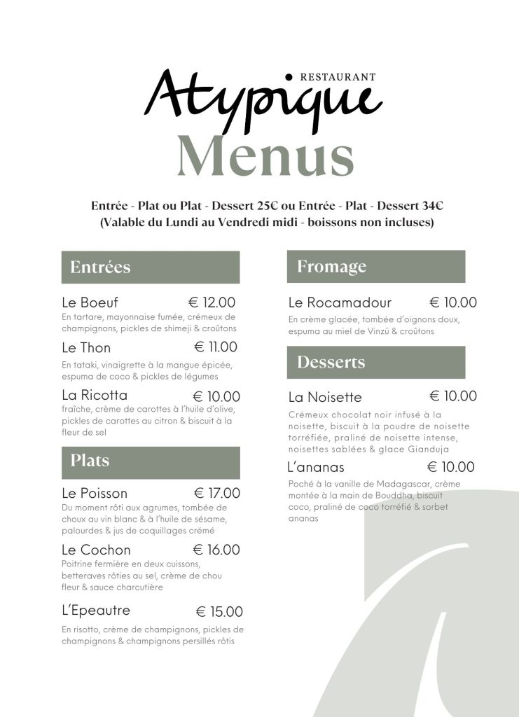 N’hésitez pas à nous contacter, par téléphone au 05.47.74.10.71, par e-mail à restaurant.atypique@gmail.com, ou en passant nous voir au restaurant !